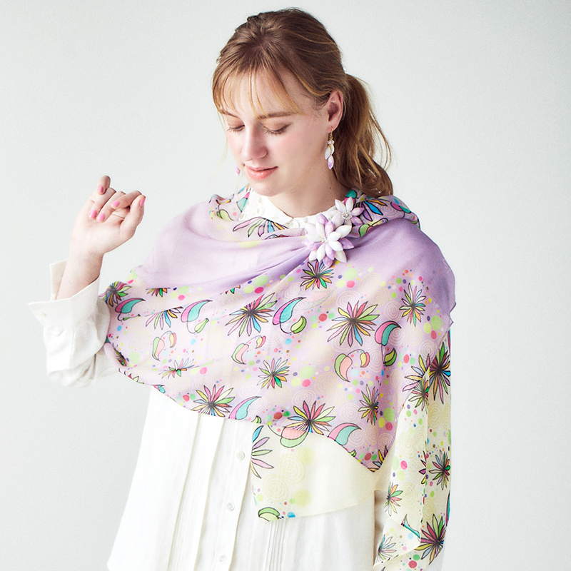 ストールの生地デザインからデザイナーの正谷聖子が手がけています。世界にどこにもないオリジナルのデザインです。