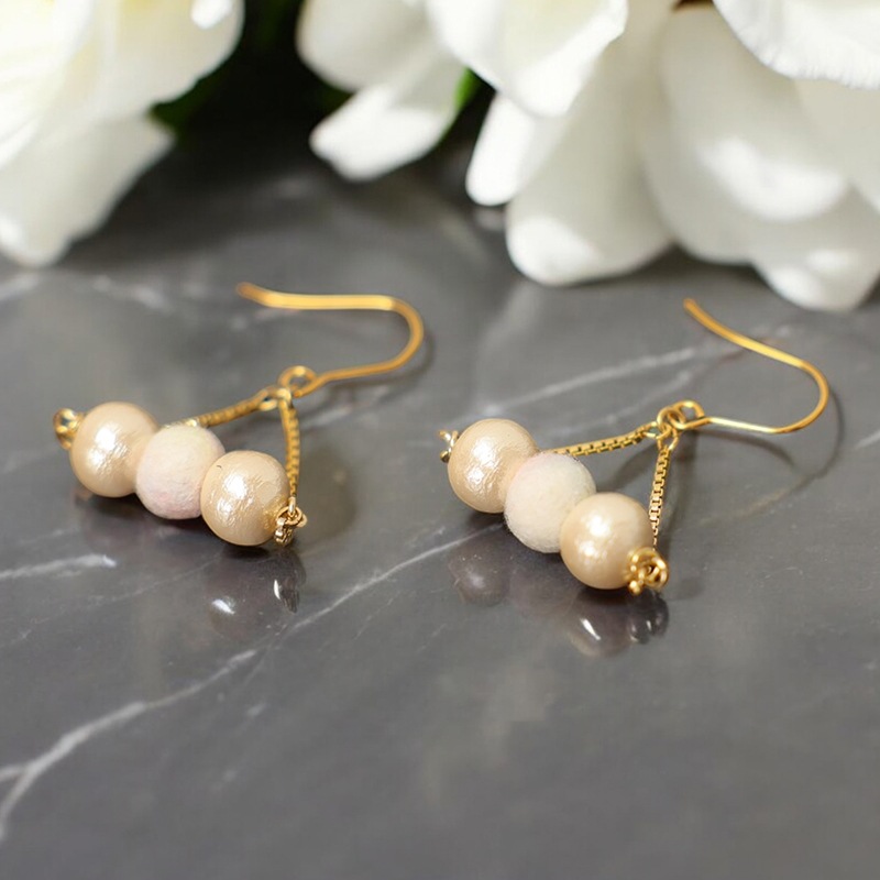 コットンパールが両サイドに並んで軽やかさが魅力のデザイン。スタイリッシュで揺れ感も楽しめるピアス/イヤリングです。