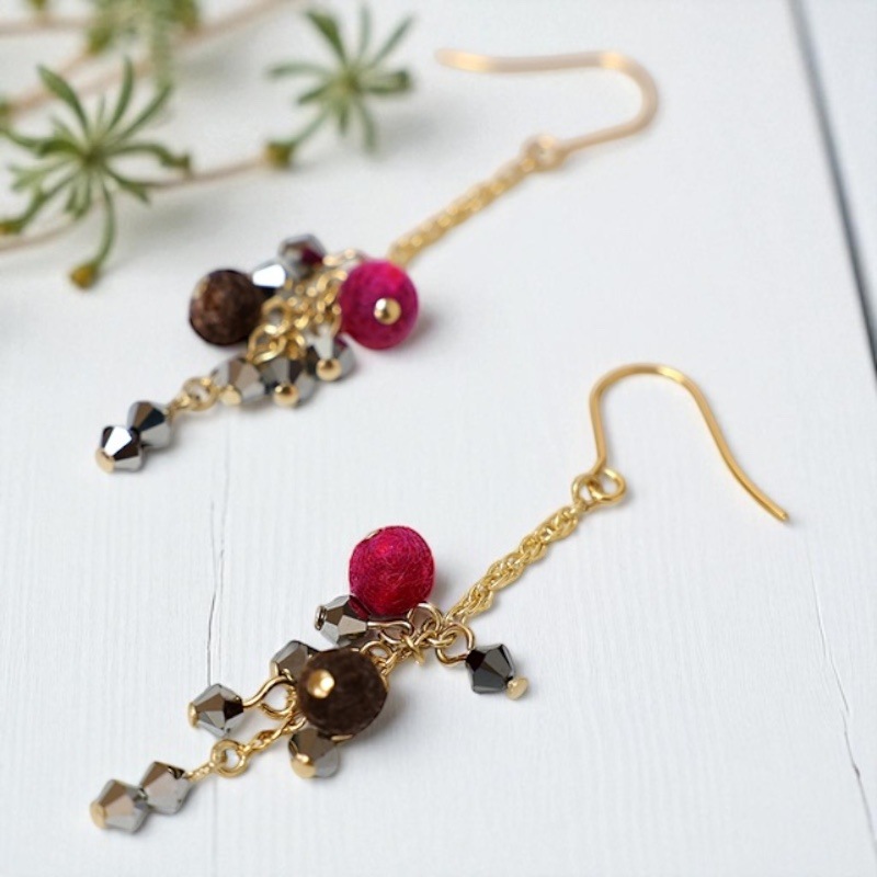 黒に合わせるとキッチリとした印象に。茶系やベージュと合わせると優しい雰囲気になります。華やかなシチュエーションに大ぶりのアクセサリーでインパクトを出すととてもエレガントな雰囲気に。オフィスなどでシンプルなコーデに小さくさりげない赤のアクセントにも。冬は全体が黒コーデになりやすいので、差し色としてもお使いください。