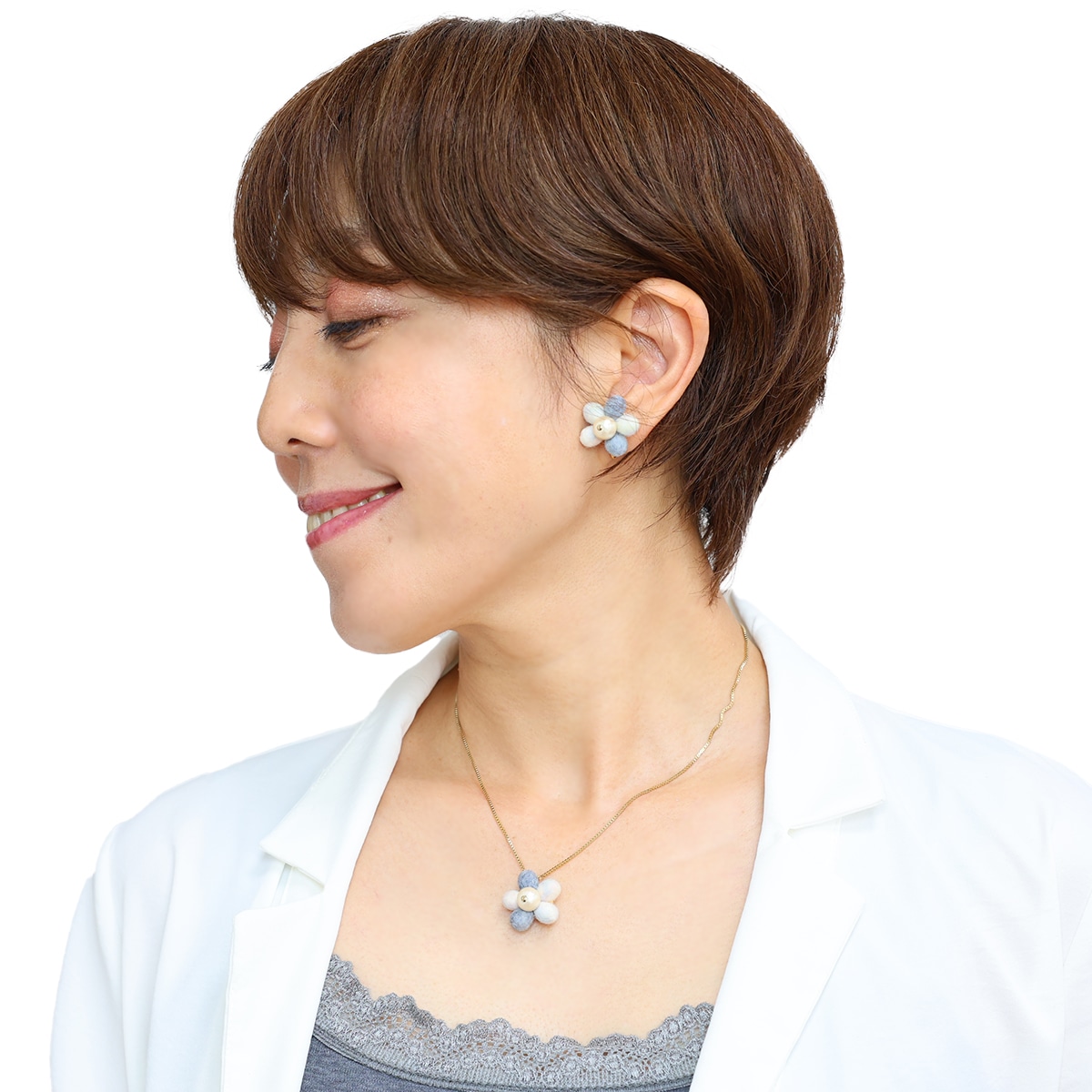 【セット割引】アネモネネックレス&ピアス/イヤリング(アイスレイク)