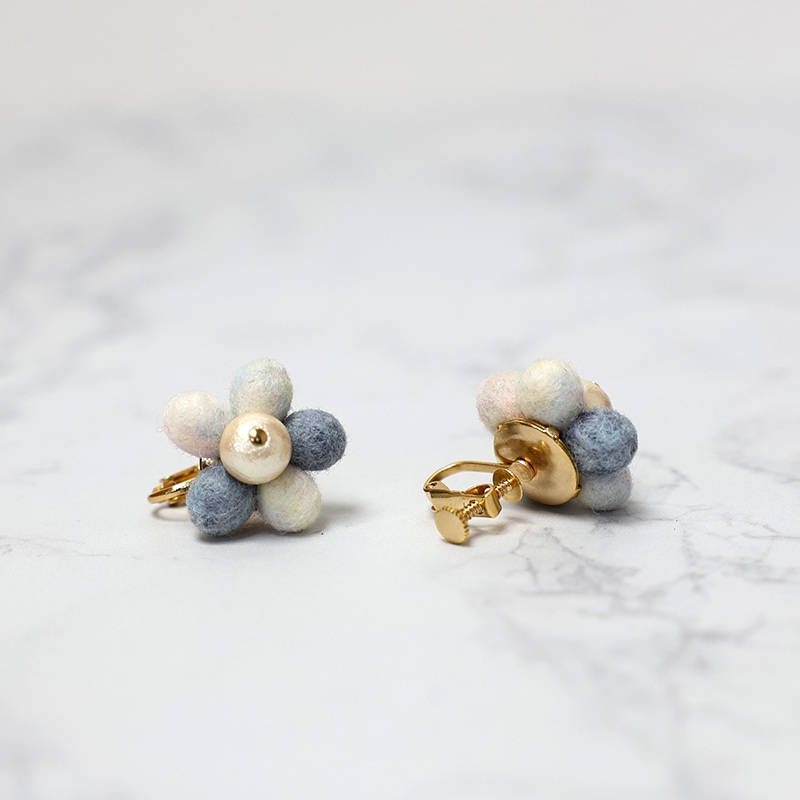 ※ピアスはキャッチ式ですが多少下を向いてしまうので、イヤリングの方がお花が正面を向きます。このデザインに関してはピアスがあいている方もイヤリングがおすすめです。