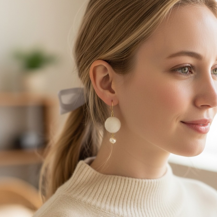 耳もとに寄り添うカボションには、アラビアンな模様をあしらい、クラシカルなアクセントを添えました。