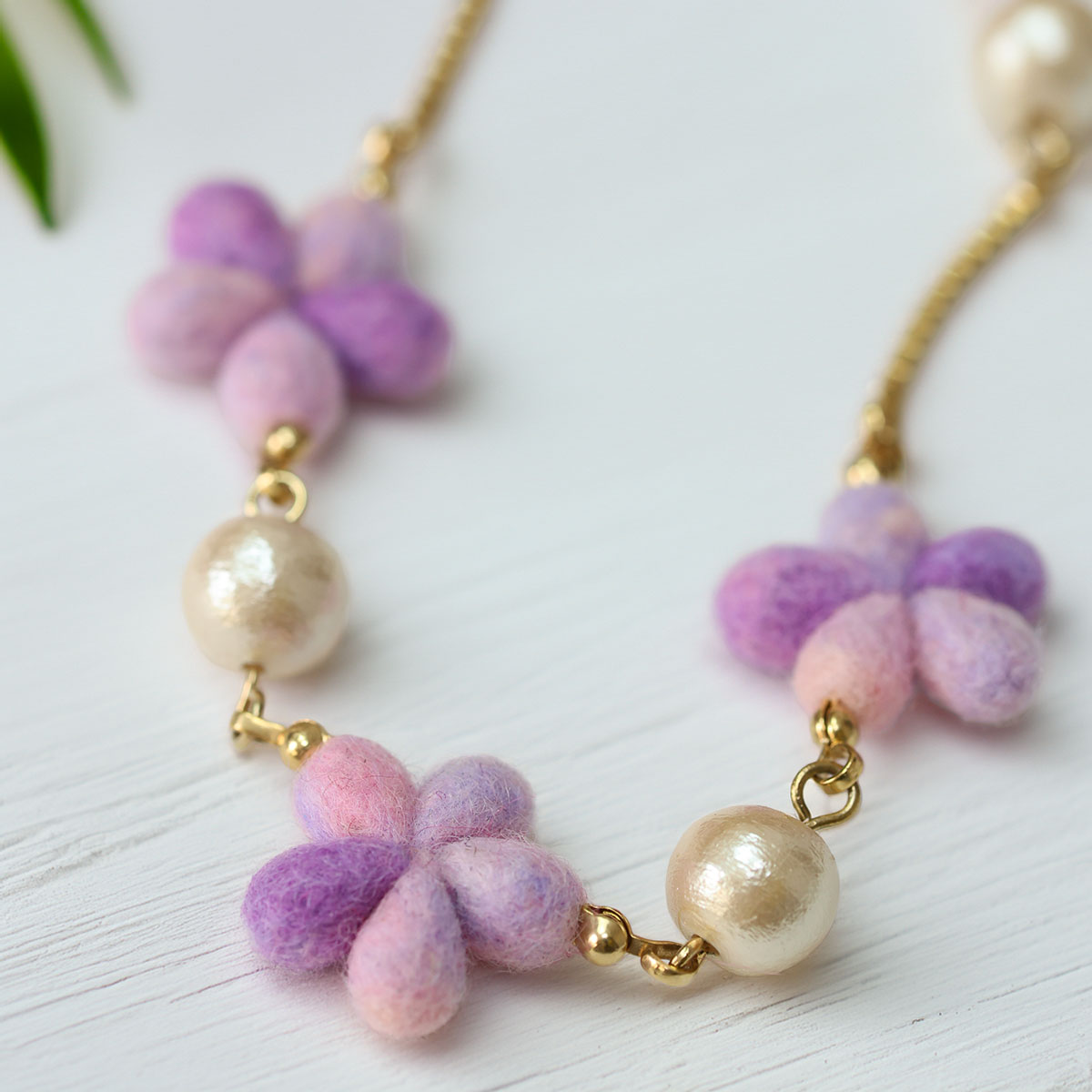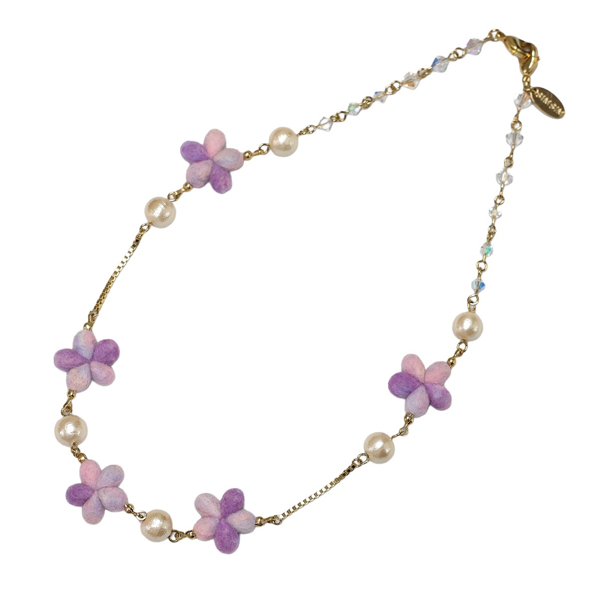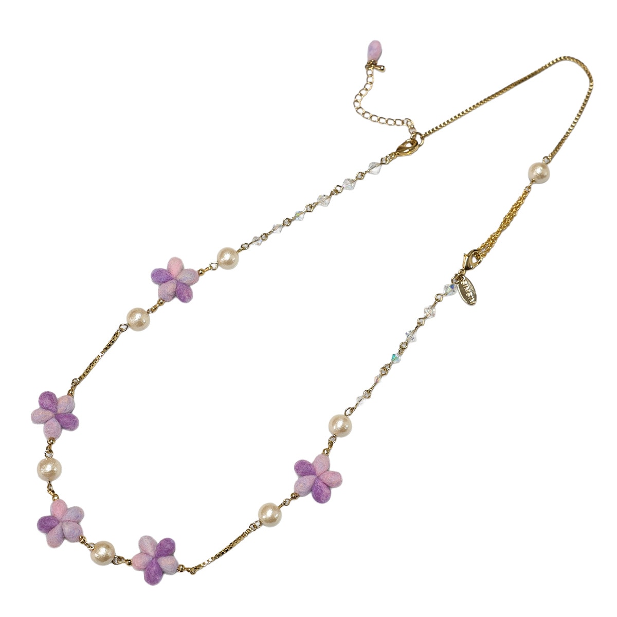 繊細なスミレの小花を贅沢にあしらったロングネックレス。