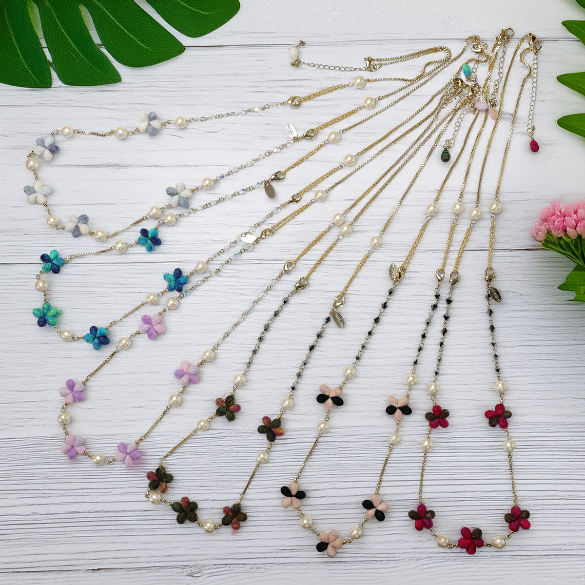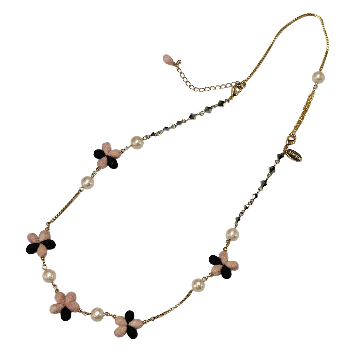 繊細なスミレの小花を贅沢にあしらったロングネックレス。