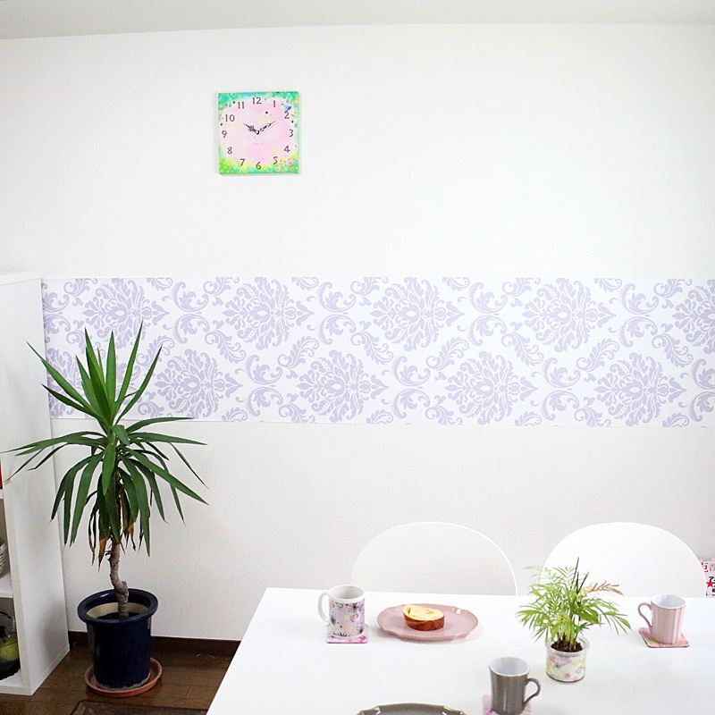 ファブリックパネルの両端にあたるように、押しピンを壁に2箇所つけて取り付けると、楽に取り付けられます。