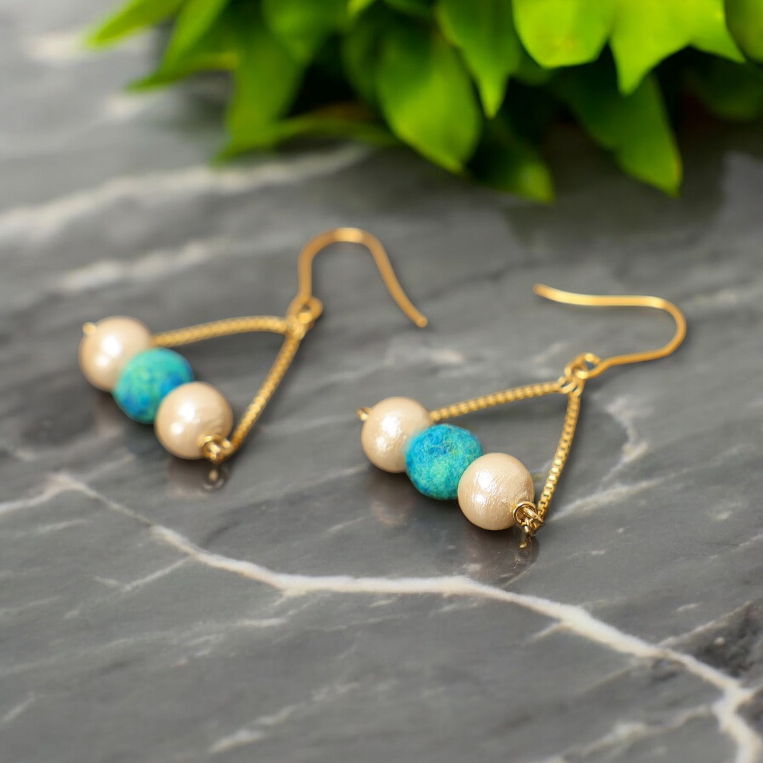 コットンパールが両サイドに並んで軽やかさが魅力のデザイン。スタイリッシュで揺れ感も楽しめるピアス/イヤリングです。