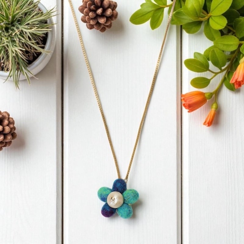 小さいお花が胸元に咲くかわいらしいデザインのネックレス