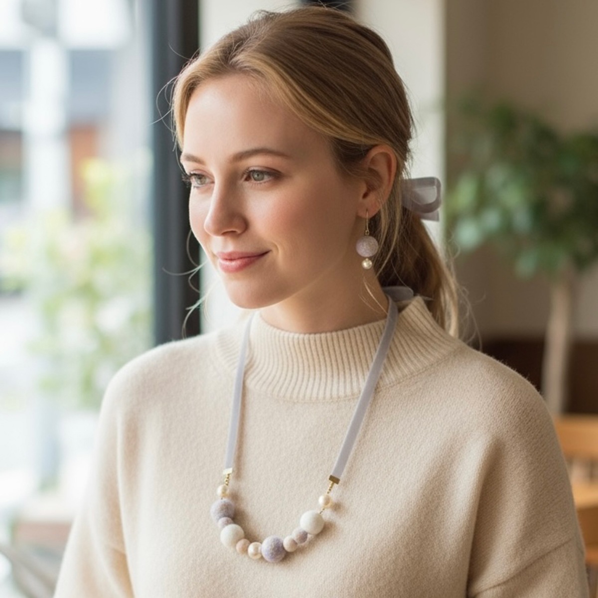 ふんわりとした色合いが、心までやさしく包みこむネックレス。
