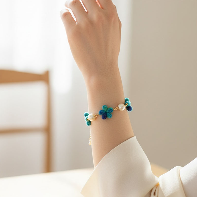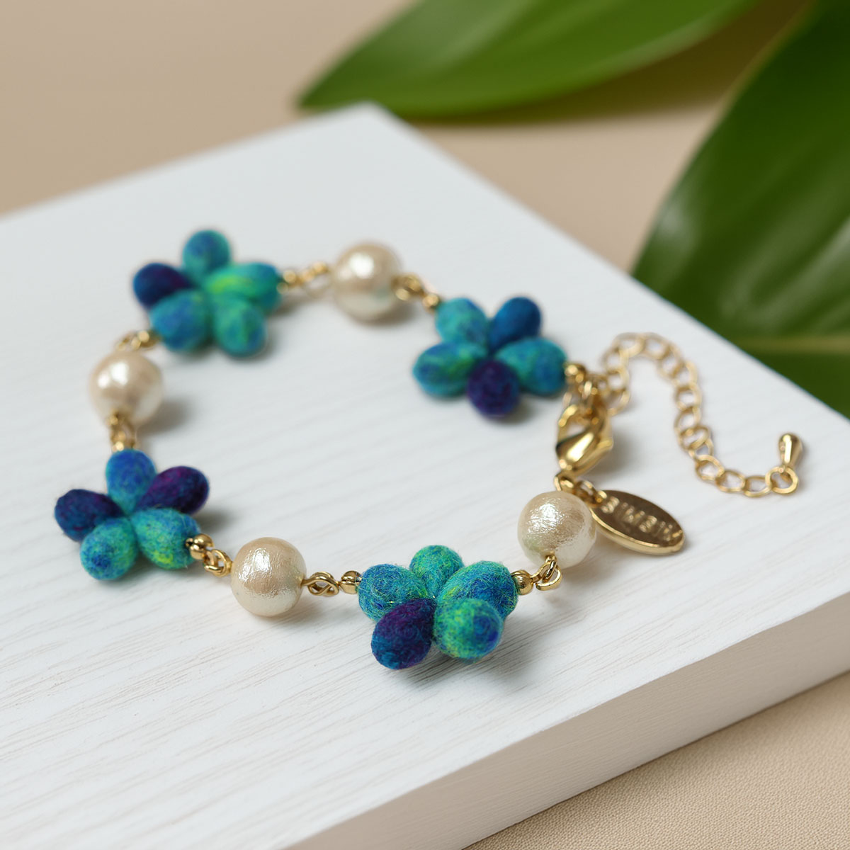 やわらかな色を重ねたスミレの小花を贅沢にあしらったブレスレット。