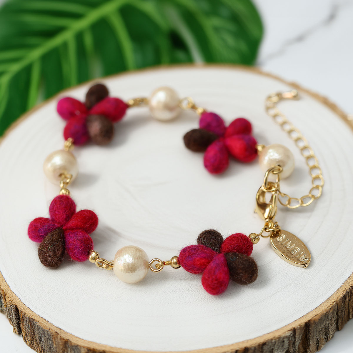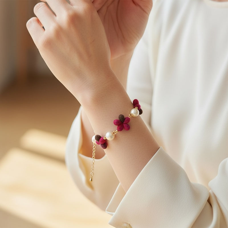 やわらかな色を重ねたスミレの小花を贅沢にあしらったブレスレット。
