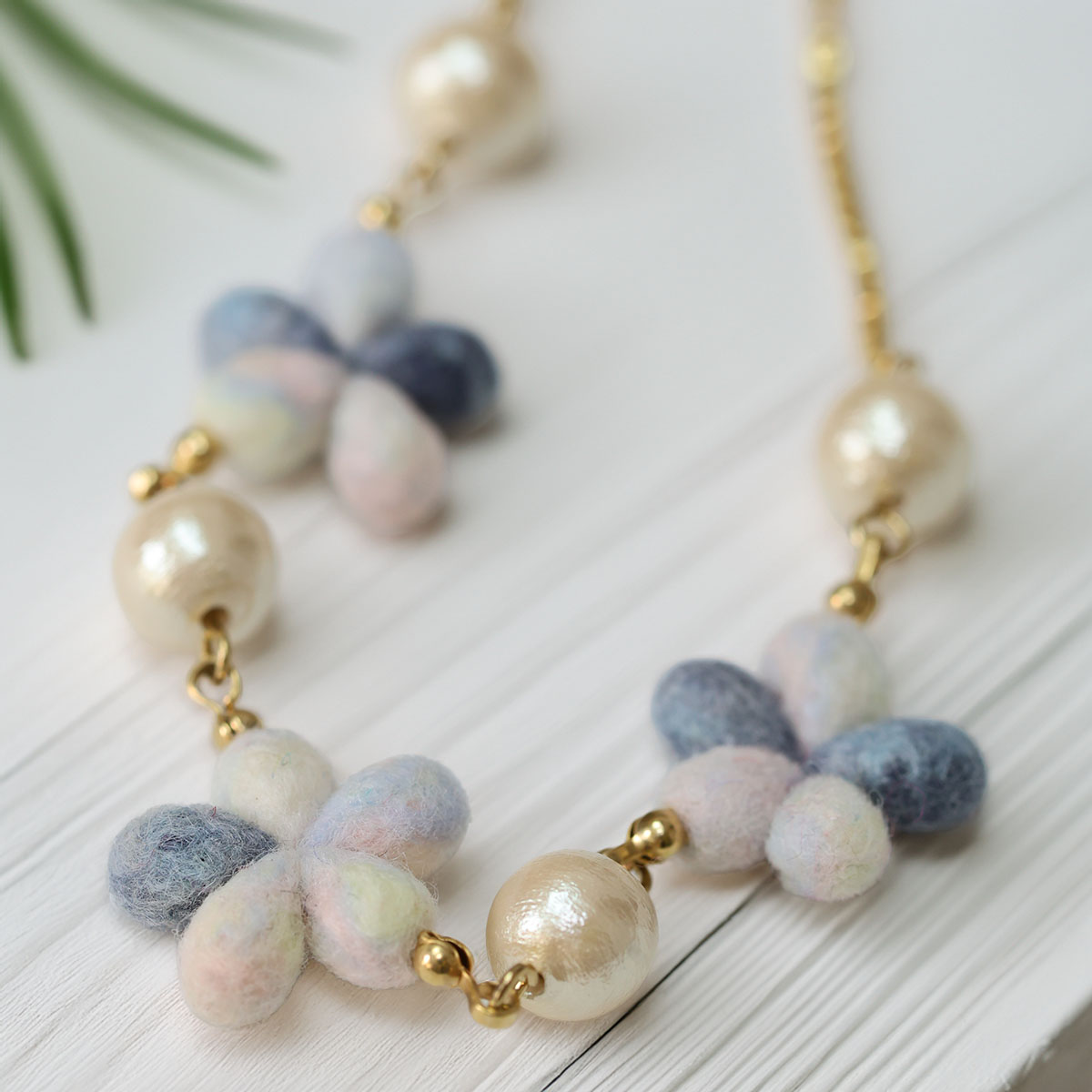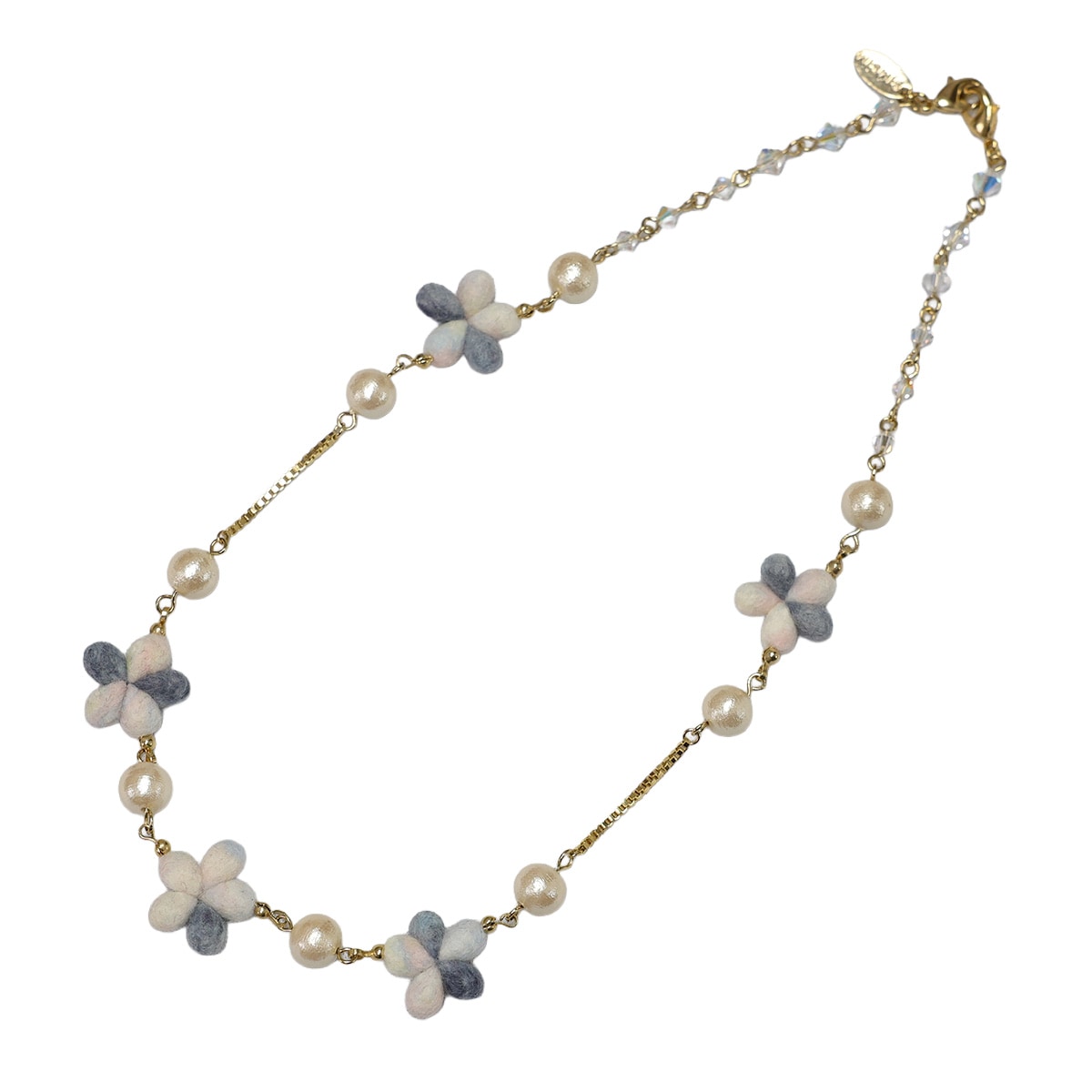 繊細なスミレの小花を贅沢にあしらったロングネックレス。