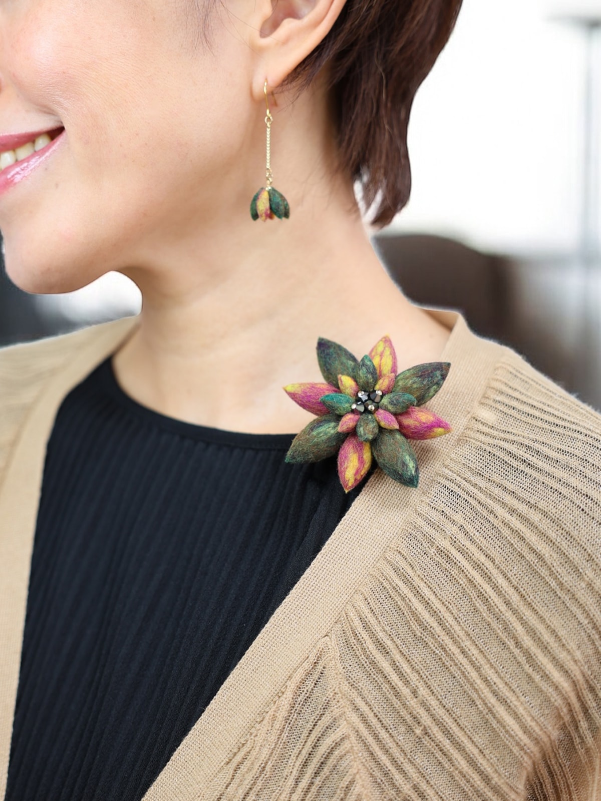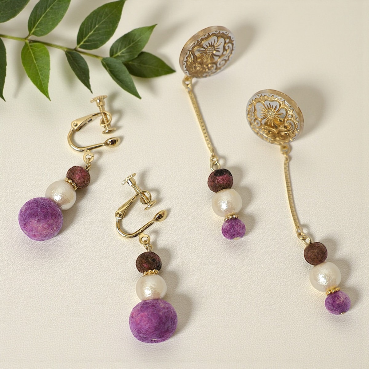 (個人的なことなんですがフェルトジュエリー制作時に手に大きなやけどを負ってしまってお湯を使う制作ができなくて、、まだ包帯ぐるぐる巻きで全治2週間くらいですが来週あたりからできると思うので順次制作次第発送させていただきます!)