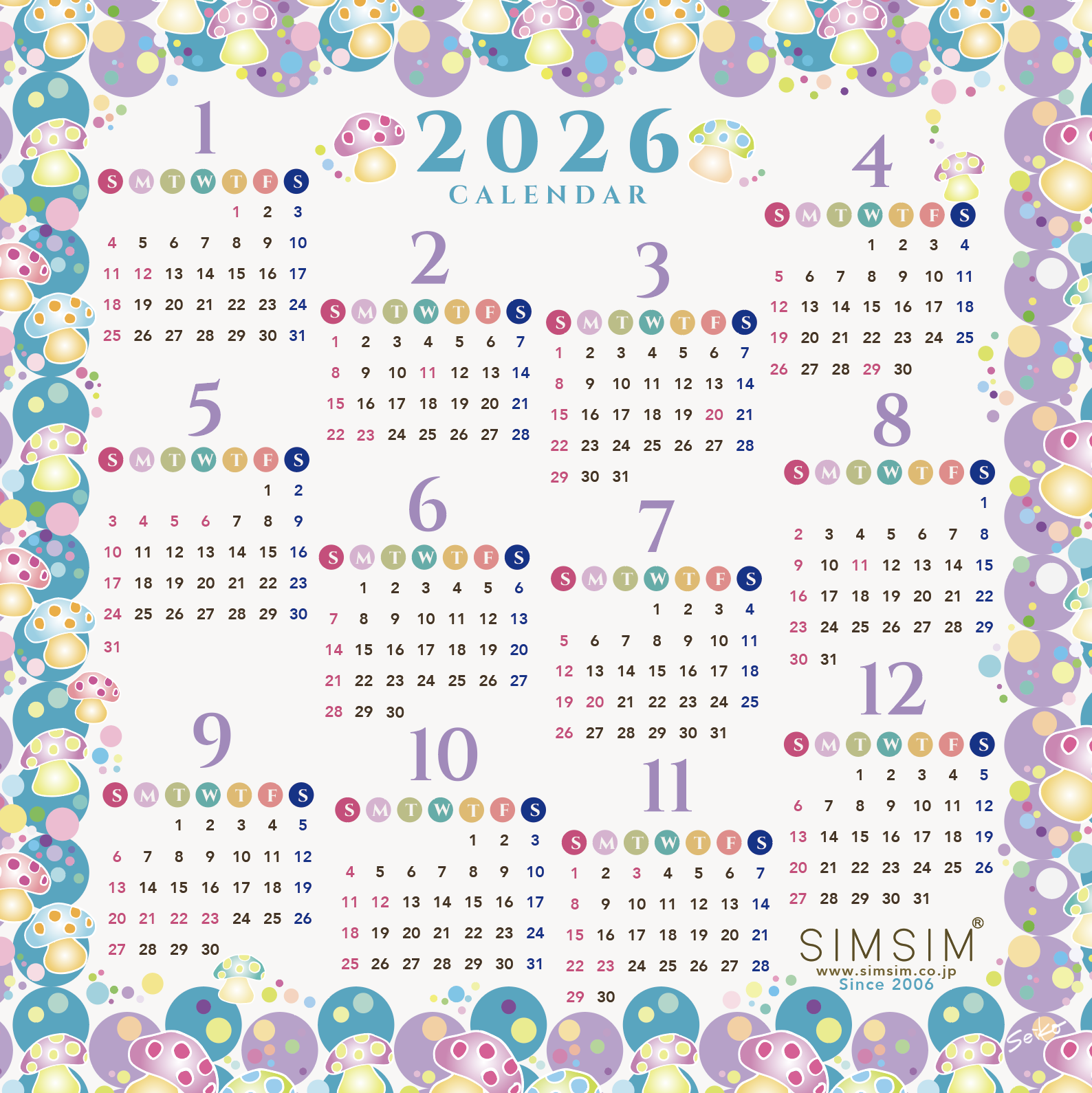 私のデザインしたきのこカレンダーです。
