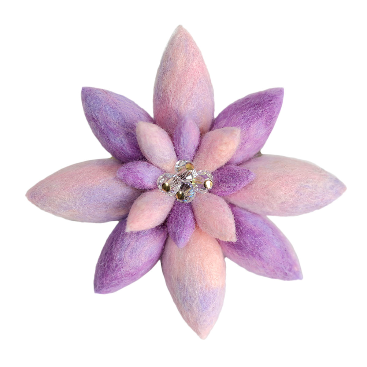 花びらにはラベンダームーン限定色3つの色彩を使用し、中央にはコットンパールをあしらって、大人の落ち着きと可憐さをさりげなくプラスしています。
